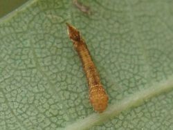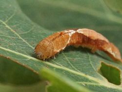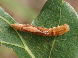 Über die Raupen ist aus unserem Bundesland erst wenig bekannt. Sie leben wohl im Mai und Juni zwischen zusammengesponnenen Blättern an (Stiel-)Eiche (Quercus robur/ spec.). Die Puppe überwintert.