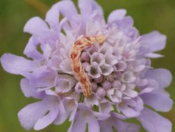 Die Raupen sind zwischen Mai und September an Blüten und Samen vieler Pflanzen zu finden, u.a. an Waldrebe (Clematis vitalba) und Mädesüß (Filipendula ulmaria).