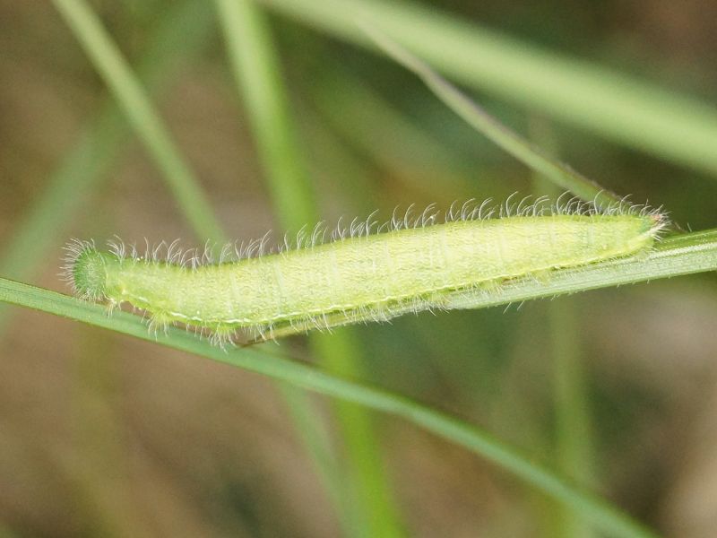 Die Weibchen legen die Eier einzeln an verschiedenen Arten von Gräsern ab. Die Überwinterung erfolgt als Raupe oder als Puppe; es gibt Hinweise darauf, dass es eine Aufspaltung in Raupen- bzw. Puppen-Überwinterer gibt. Das ist aber noch nicht ausreichend untersucht.