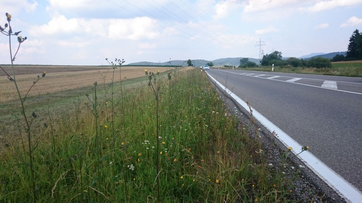 Aber zum Glück gibt's ja noch die Straßenränder - hervorragende Blüh-Inseln und Rückzugsgebiete in der ansonsten völlig blütenleeren Landschaft.