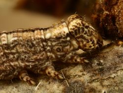 Die überwinternden Raupen benötigen Flechten (= Lichenes) als Nahrungspflanzen und dort sind sie auch ab Herbst zu finden.