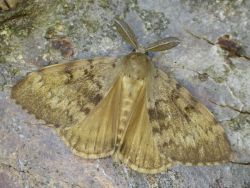 Die Unterfamilie der Trägspinner wurde früher als eigenständige Familie geführt. Die Falter sind mittelgroß und den Spinnern ähnlich. Die Männchen tragen gefiederte, die Weibchen fadenförmige Fühler. Mundwerkzeuge, mit denen Nahrung aufgenommen werden könnte, sind nicht vorhanden. Die Weibchen haben deshalb schon beim Schlupf fertig entwickelte Eier, damit sofort nach der Paarung mit der Eiablage begonnen werden kann. Bei manchen Arten kommt es von Zeit zu Zeit zu Massenvermehrungen, weshalb für die Unterfamilie auch der Name "Schadspinner" verwendet wird. von den 12 Arten gelten derzeit 8 als ungefährdet. |