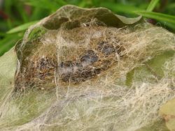 Die Raupen leben ab Herbst, überwinternd, bis Mai in "Nestern" an einer Vielzahl von Laubgehölzen. In unserem Bundesland sind laut EBERT 27 Pflanzenarten von 10 verschiedenen Pflanzenfamilien als Nahrungspflanze nachgewiesen.