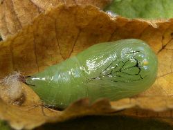 Kräutern, aber auch an Sträuchern wie Pfaffenhütchen (Euonymus europaeus) oder Schneebeere (Symphoricarpos albus). Die Puppe überwintert.