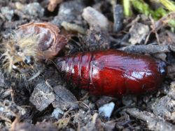 Puppen ♀ + ♂, ex larva-Zucht, Raupe aus Benzingen 01.07.2024 (Foto: A. Röcker)