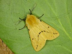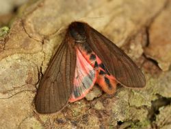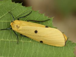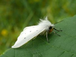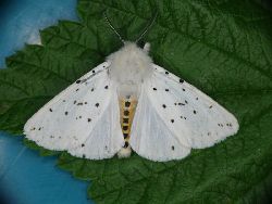 Der Breitflügelige Fleckleibbär kommt bei uns in nahezu allen Naturräumen vor, mit Schwerpunkten in lichten Auenwäldern und deren Randbereichen. Seine behaarte Raupe besitzt ein breites Nahrungsspektrum.