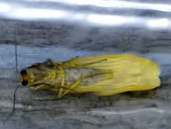 Die "großen" Bären fallen meist durch ihre Buntheit auf, bei der es sich um eine Warntracht handelt. Die Raupen der Flechtenbärchen ernähren sich von Flechten. Die Falter haben schmale Flügel, die in der Ruhestellung nach hinten gelegt werden, was ihnen ein längliches Aussehen verschafft. Die Falter der Gattung Eilema werden in "Flachflügel-" und "Rollflügel-Arten" unterteilt. Im Gegensatz zu den "großen" Bären haben die Flechtenbärchen Saugrüssel und können damit Nahrung aufnehmen. |