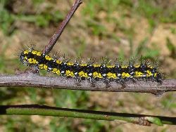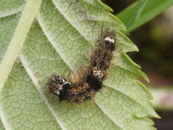 Er überwintert als kleine unauffällige Raupe. Im Frühjahr erinnern diese wegen ihrer gelbschwarzen Färbung zunächst an diejenigen vom Kleinen Fuchs - vor allem, wenn sie noch auf Brennnesseln sitzen.