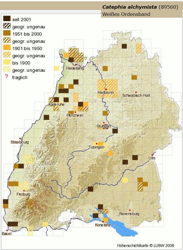 Das trifft in ähnlicher Weise auch auf Catephia alchymista zu, wenngleich es von dieser Art schon ein paar wenige Nachweise auch aus anderen Landesteilen gibt.