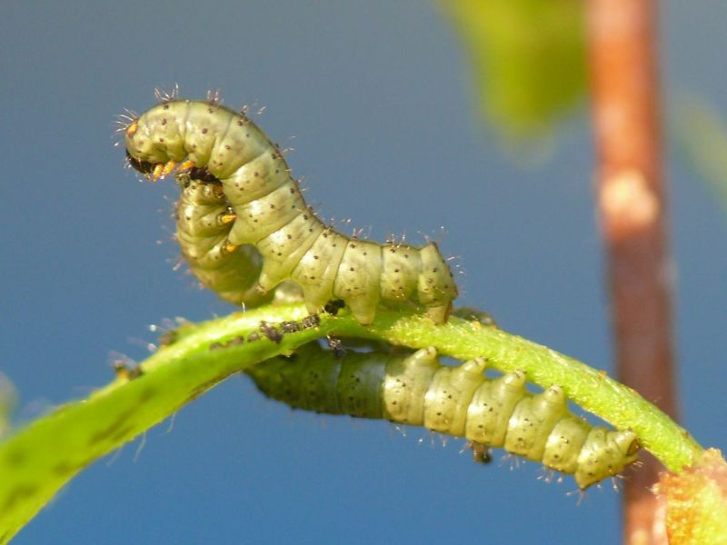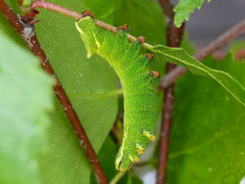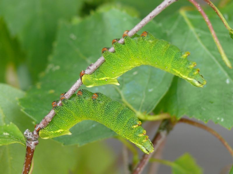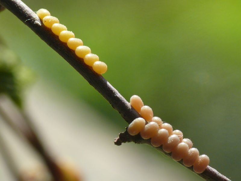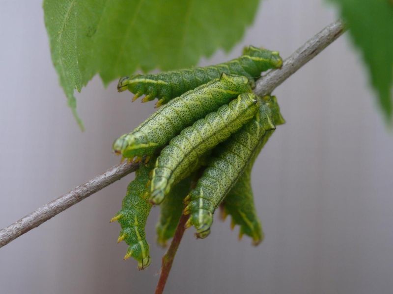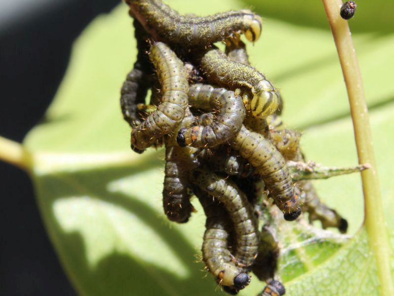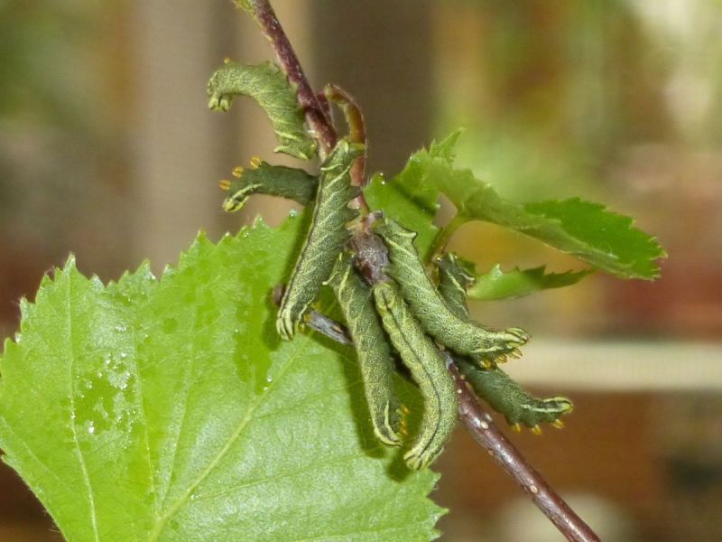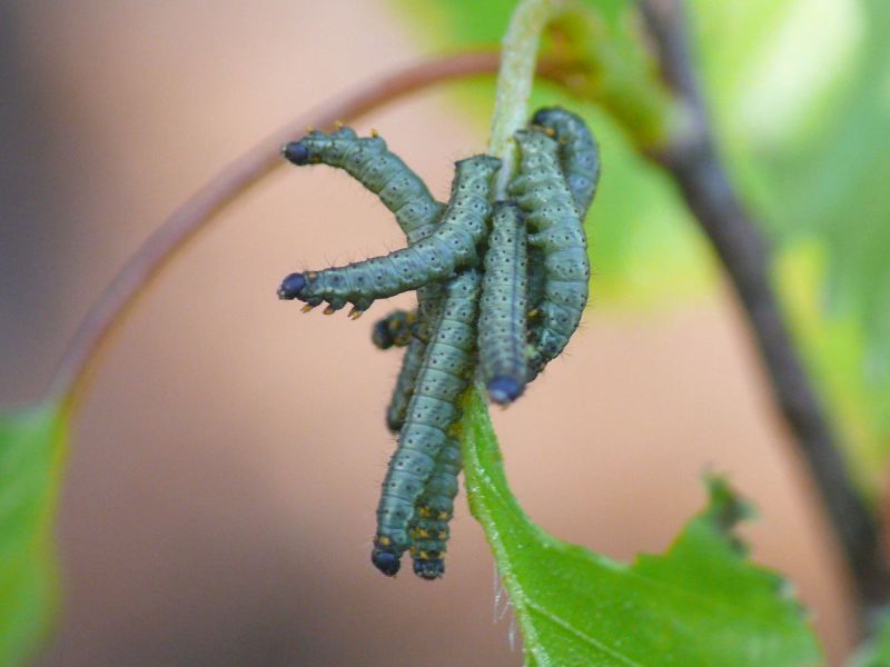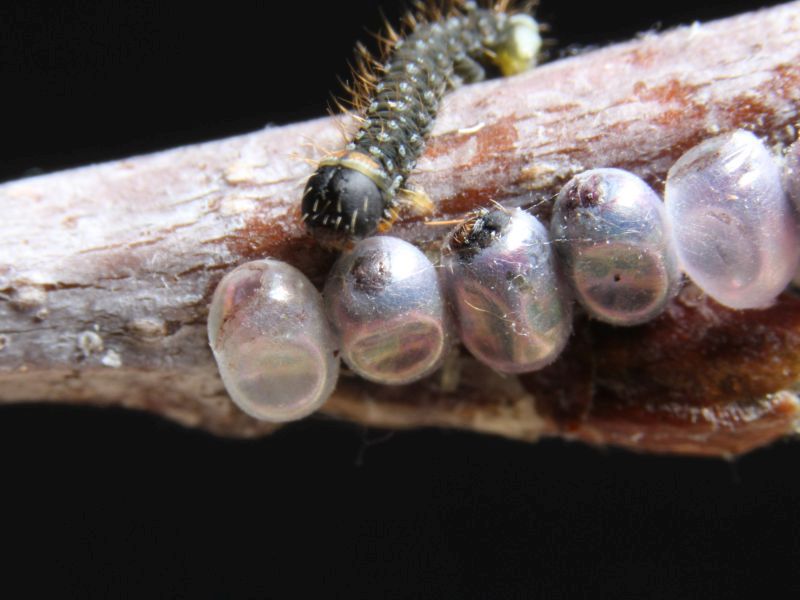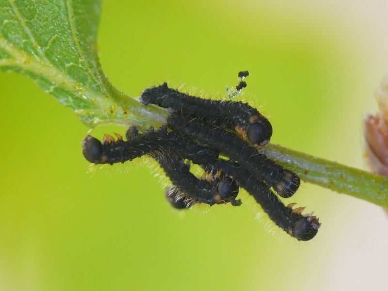 Die Raupen entwickeln sich in unterschiedlicher Geschwindigkeit, so dass häufig Raupen verschiedener Entwicklungsstadien beieinander sitzen. Aus diesem Grund haben wir auch darauf verzichtet, das jeweilige Raupen-Entwicklungsstadium zu benennen.